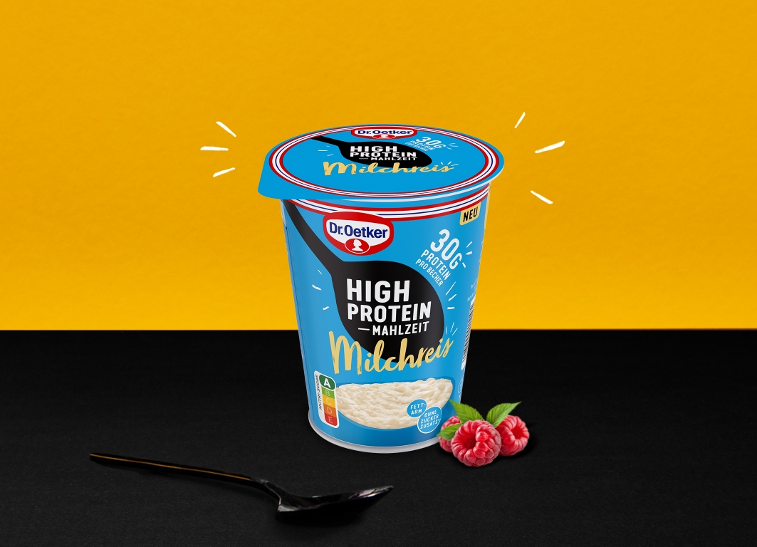 ⁠Dr. Oetker eine neue Innovation im Kühlregal: Der High Protein Milchreis ergänzt das beliebte Sortiment und bietet allen, die Lust auf bewussten Genuss haben, noch mehr Auswahl im Markt der gekühlten High Protein Produkte. Der Milchreis enthält 30 g Protein pro Becher, schmeckt cremig-lecker und ist zudem fettarm und ohne Zuckerzusatz*.