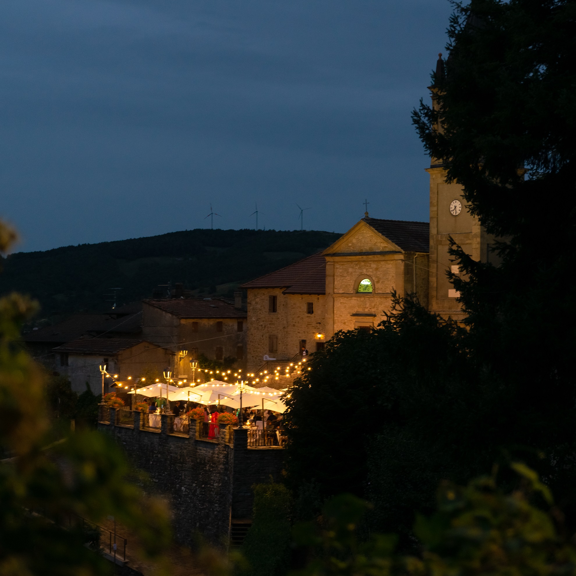 Die Gäste wurden auf dem Dorfplatz empfangen, der mit kleinen Lichtern und festlich gedeckten Tischen geschmückt war. Dann kam die Überraschung: Die Piazza hatte sich für eine Nacht in eine Open-Air-Pizzeria verwandelt - dank der Unterstützung von cameo.